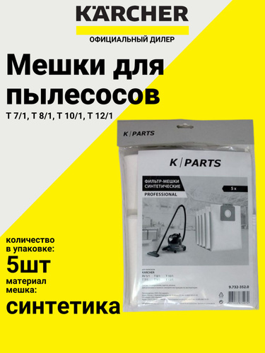 K-Parts мешки для пылесосов Karcher Т 7/1, 8/1, 10/1, 12/1, BV 5, 5 ШТ, (9.732-352.0)