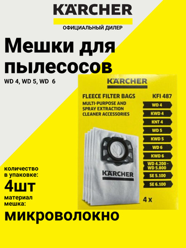Мешки для пылесоса Керхер WD3 /WD 2/SE 4, флис, 4 шт.(2.863-314.0)