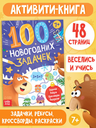 Новогодние книги для детей, Буква-Ленд, "100 новогодних задачек", книги для детей 5+