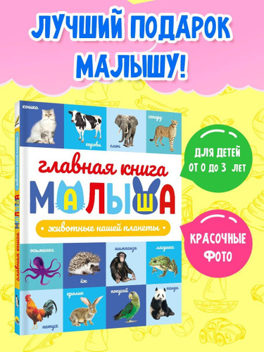 Главная книга малыша, развивающие книги от 1 года, "Животные нашей планеты"