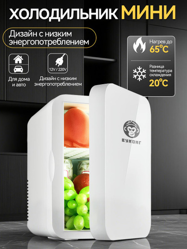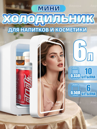 Минихолодильник белого цвета, с зеркалом и LED-подсветкой, 12В/220В