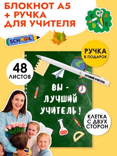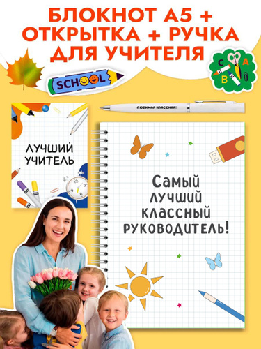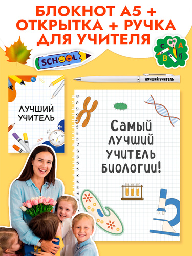 Подарочный набор с ручкой, блокнотом и мини открыткой в подарок учителю по биологии на Выпускной