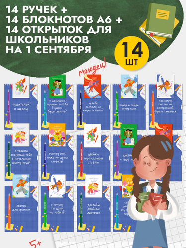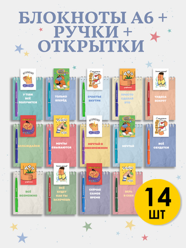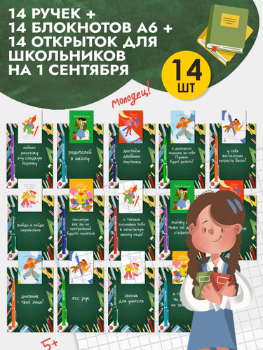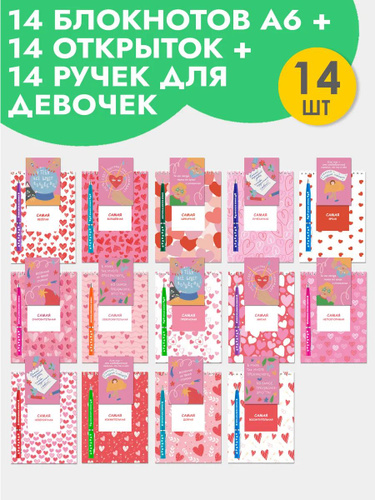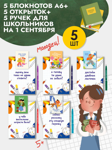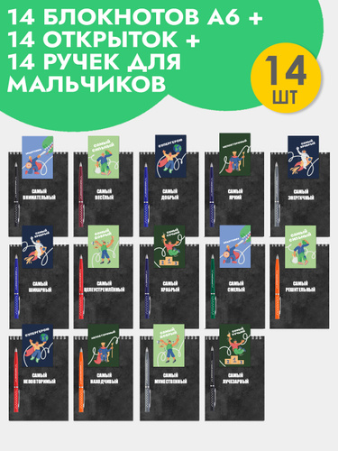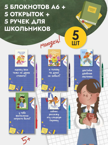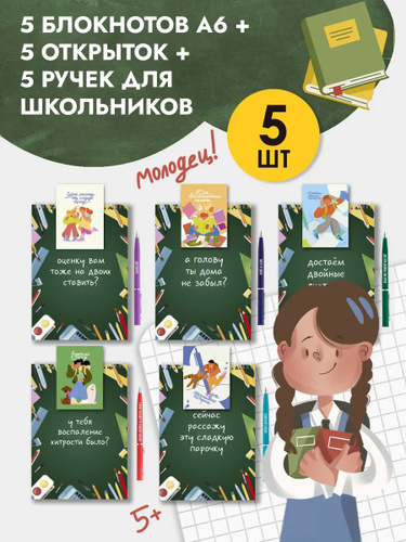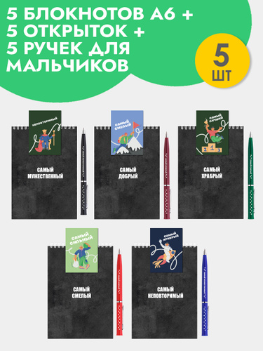 Подарочный набор для школьников мальчиков и девочек: мини-открытка, блокнот A6 и шариковая ручка на 23 февраля, Выпускной, день рождения