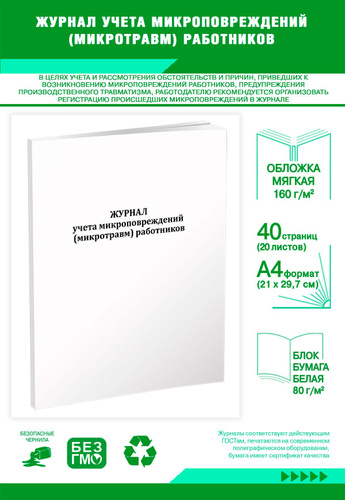 Журнал учета микроповреждений (микротравм) работников. 40 страниц