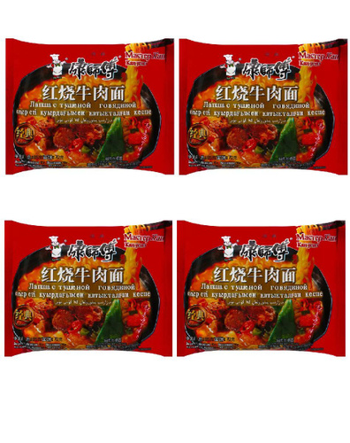 Лапша Мастер Кан Тушеная говядина, 4 шт по 100 гр, пакет