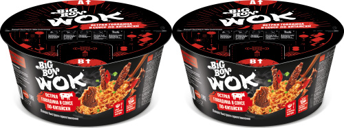 Лапша Big Bon Wok с говядиной и соусом по-китайски острая быстрого приготовления, комплект: 2 упаковки по 85 г