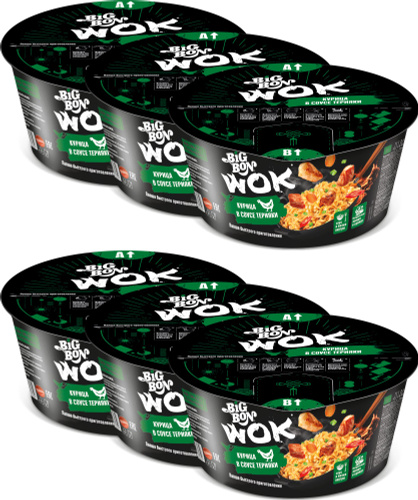 Лапша Big Bon Wok с курицей и соусом терияки быстрого приготовления, комплект: 6 упаковок по 85 г