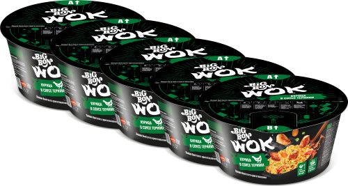 Лапша Big Bon Wok с курицей и соусом терияки быстрого приготовления, комплект: 5 упаковок по 85 г