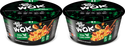 Лапша Big Bon Wok с курицей и соусом терияки быстрого приготовления, комплект: 2 упаковки по 85 г