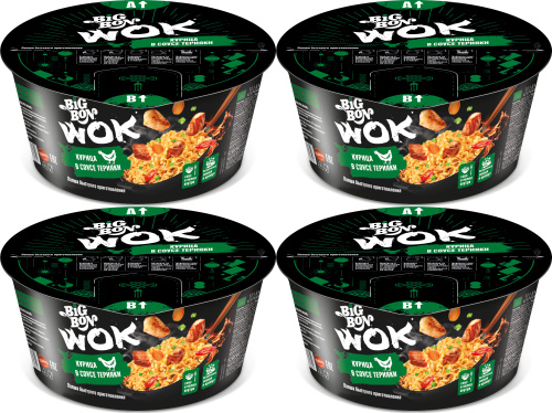 Лапша Big Bon Wok с курицей и соусом терияки быстрого приготовления, комплект: 4 упаковки по 85 г