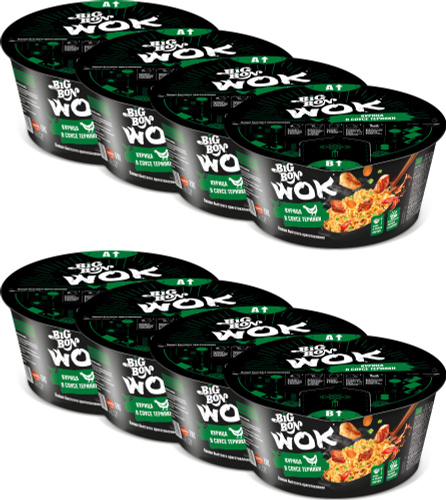 Лапша Big Bon Wok с курицей и соусом терияки быстрого приготовления, комплект: 8 упаковок по 85 г