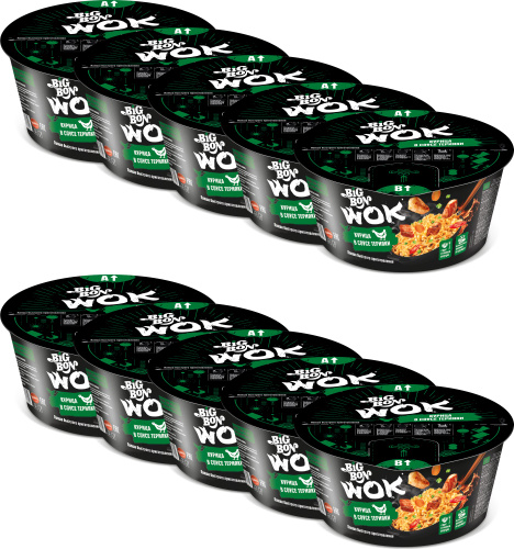 Лапша Big Bon Wok с курицей и соусом терияки быстрого приготовления, комплект: 10 упаковок по 85 г