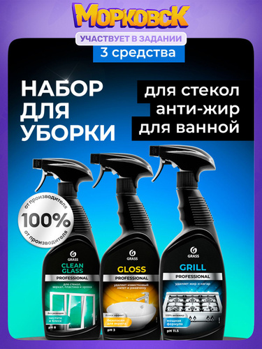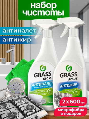 Набор чистящих средств: для кухни Azelit GRASS Азелит антижир 600мл + для акриловых ванн GRASS Gloss 600 мл, антиналет
