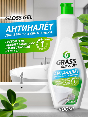 GRASS Чистящее средство для ванной комнаты Gloss Gel, от налета и ржавчины, кислотное, антиналет, 500 мл.0,5 л