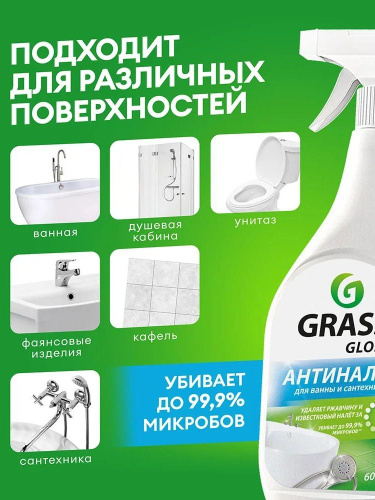Средство для ванной комнаты, уборки сантехнических блоков GRASS GLOSS, Грас антиналет спрей 600 мл