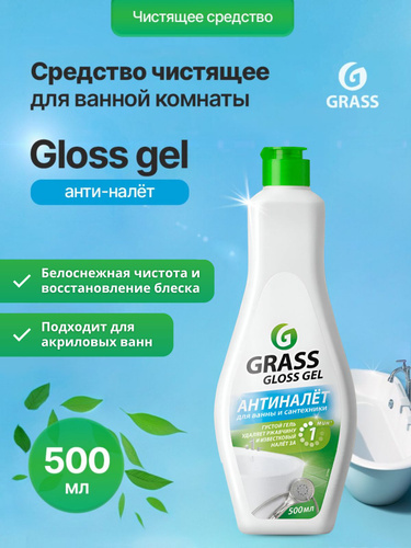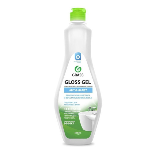 Чистящее гель средство для акриловых ванн GRASS Gloss-gel 500 мл, антиналет, средство для сантехники от известкового налета и ржавчины