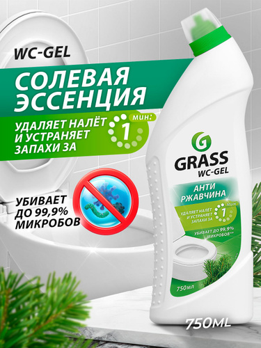 Средство для унитаза, туалета, сантехники от ржавчины и камня GRASS WC-gel 1л