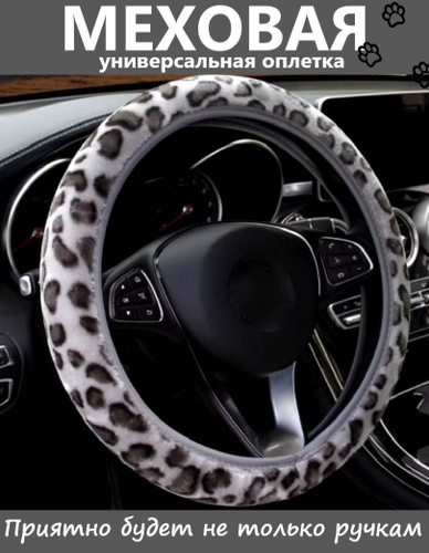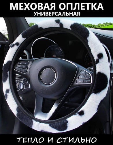 Оплетка меховая черно-белая на руль универсальная