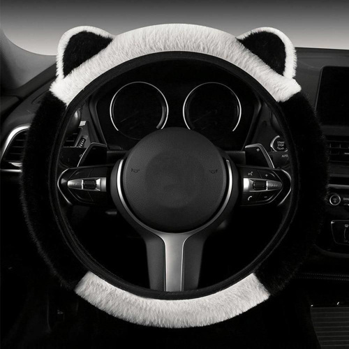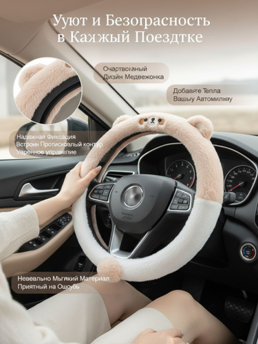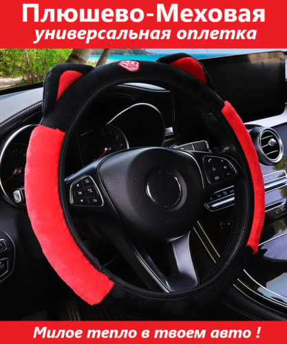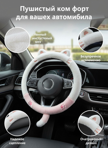 Милый пушистый чехол на руль 38 см Котик из искусственного меха: зимний теплый противоскользящий декор с резиновым покрытием для авто