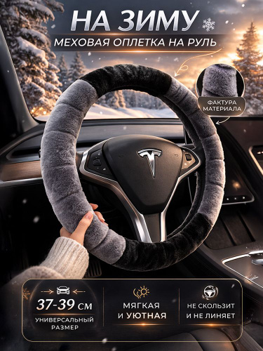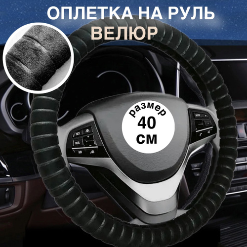 Чехол на руль автомобиля, 38 см, зимний, велюр (Полиэстер + TPE), утепленный, антискользящий