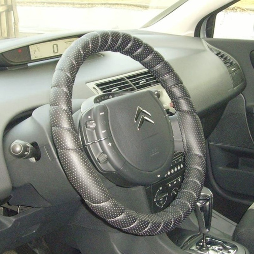 Оплетка на руль, сшивной чехол на руль, 38 см, с перфорацией, искусственная кожа, черный
