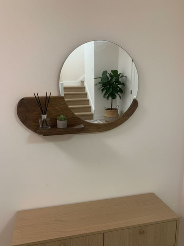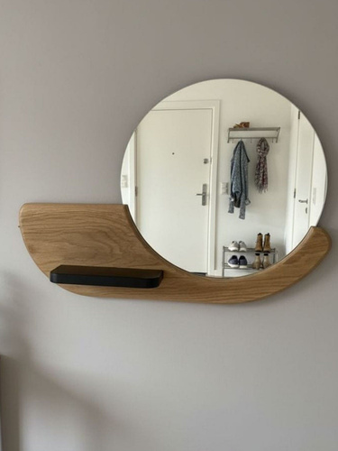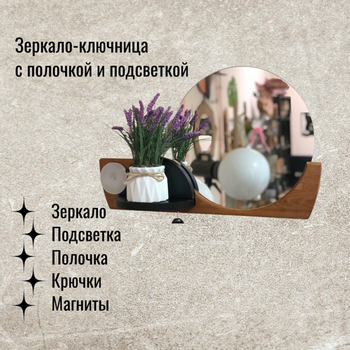 Зеркало настенное в прихожую с полкой ключницей натуральный дуб круглое