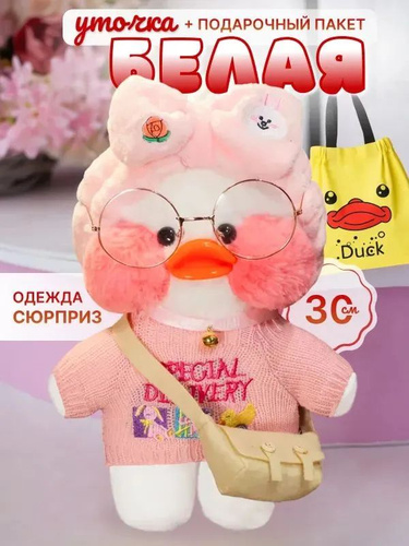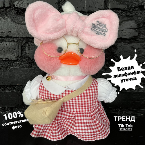 Мягкая игрушка утка лалафанфан 30 см, одежда в ассортименте, белая