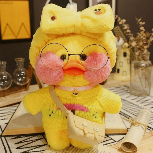 Утка Lalafanfan / Желтая уточка с розовыми щечками Лалафанфан /Уточка Lalafanfan / Маленькая желтая утка лалафанфан/белая