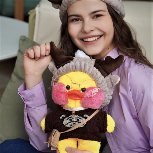Мягкая игрушка утка лалафанфан 30 см, одежда в ассортименте, желтая