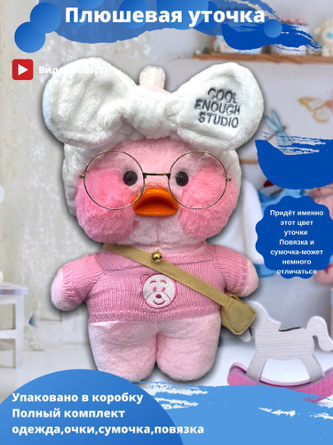 Мягкая игрушка утка лалафанфан 30 см, одежда в ассортименте, розовая