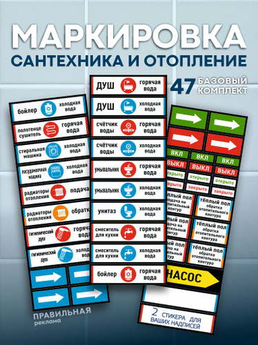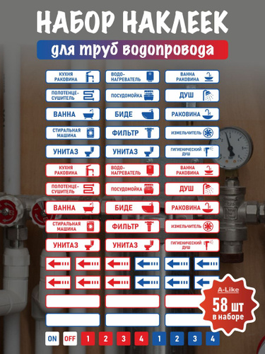 Наклейки для маркировки сантехники / водоснабжения (маркировка для труб)