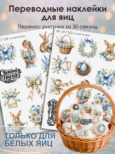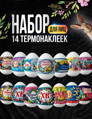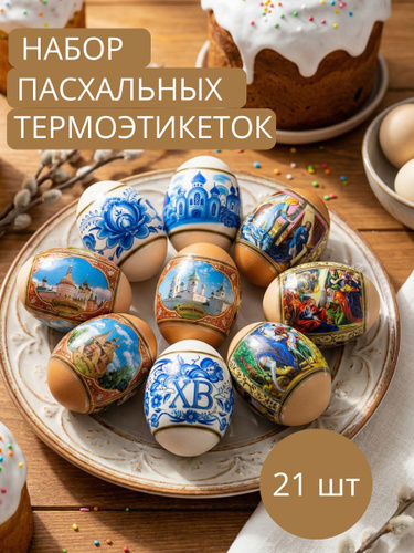 Термонаклейки для яиц пасхальные, набор 21 этикетка