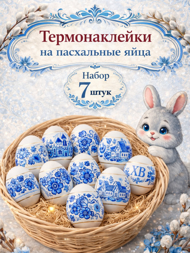 Пасхальные наклейки на яйца набор из 7 шт "Гжель, Хохлома"