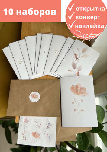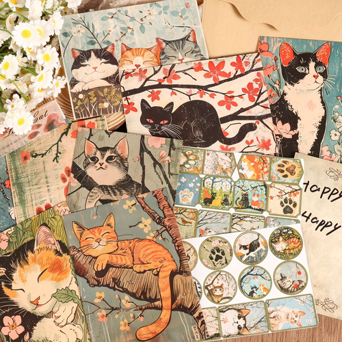Набор толстых открыток JAIIMAN 16 шт 4 конверта 46 наклейки сакура кот укиё-э