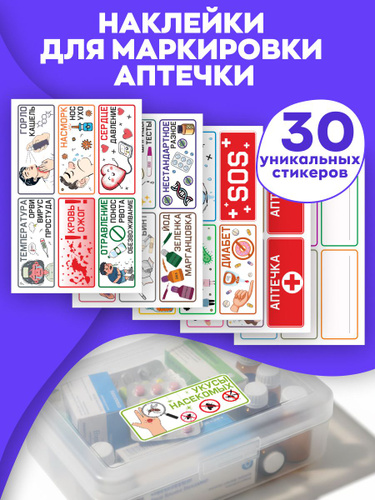 Наклейки для маркировки аптечки, 30 шт