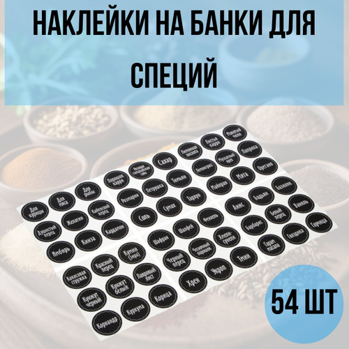 VETTA Наклейки на банки для специй и приправ, 54шт, матовые / на русском языке, самоклеящиеся