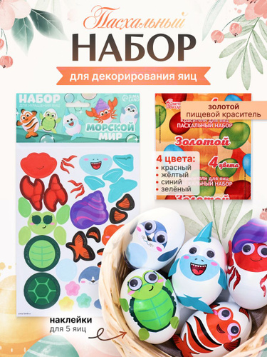 Пасхальный набор для яиц "Цыплята и кролики": 2 красителя (оранжевый, зелёный), наклейки, пасхальный декор для яиц