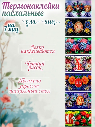 Термонаклейки для яиц пасхальные украшения, термонаклейка набор 7 шт Secret&Mouse "Цветы"