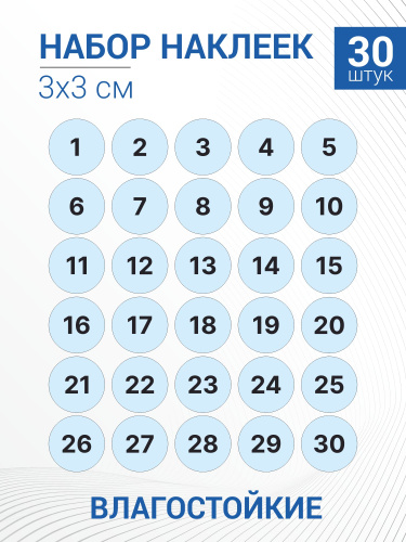 Набор наклеек Голубые цифры от 1 до 30,