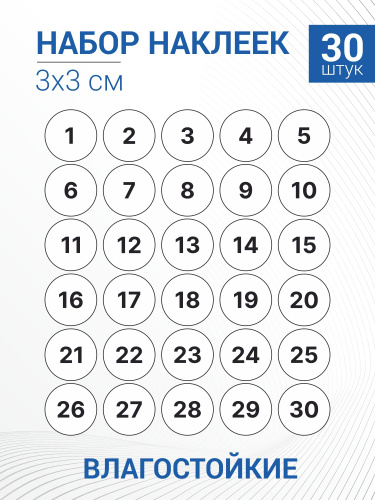 Набор наклеек Белые цифры от 1 до 30