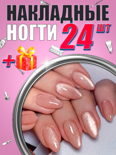 Накладные ногти кошачий глаз ( 24 типсы + маникюрный набор )