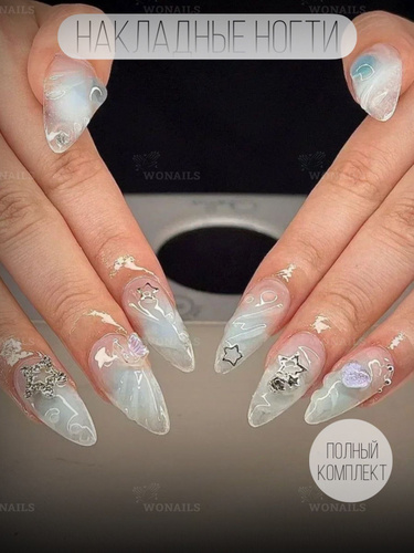 Накладные ногти с дизайном и клеем длинные 3 набора