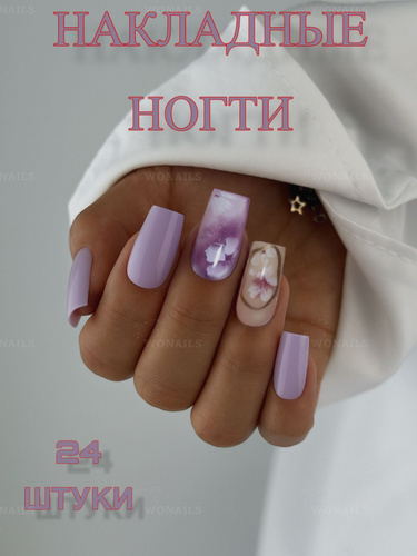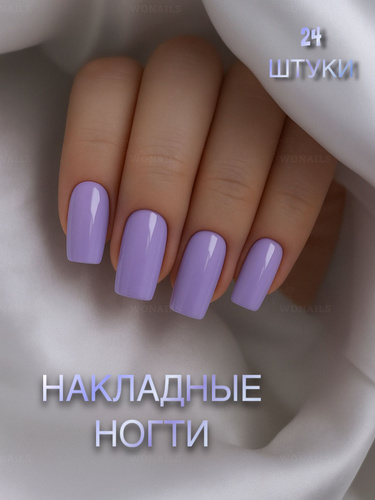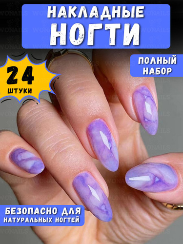 Накладные ногти миндальной формы 24 шт, светло-фиолетовые