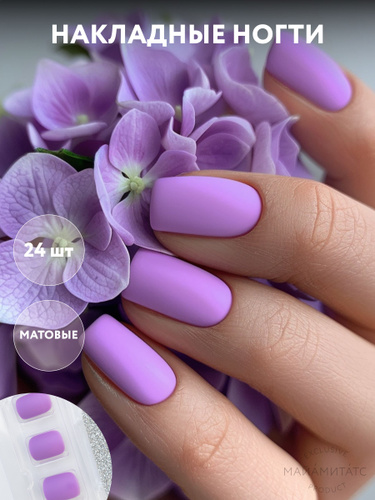 Накладные ногти короткие матовые квадрат фиолетовые