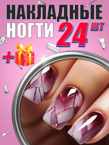 Купи 2 ЛЮБЫХ товара, получи 1 в подарок! Накладные ногти с дизайном 24 шт + клей Модный нейл-арт 2025