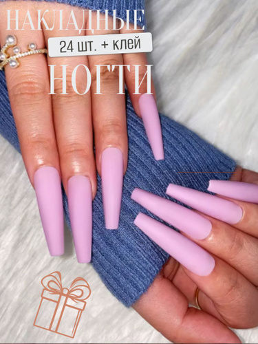 Накладные ногти длинные матовые сиреневые, форма балерина