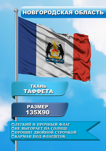 Флаг Новгородская область, 135x90 см, полиэфирный шелк