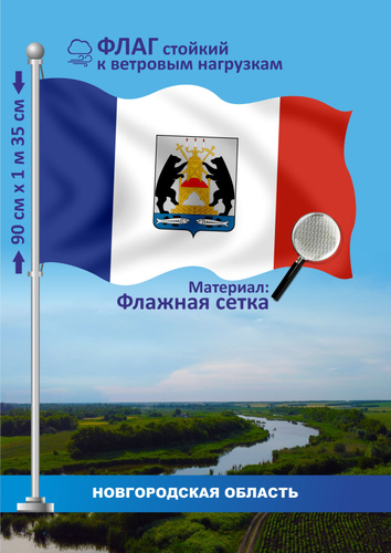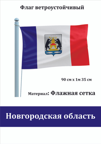 Флаг Новгородская область, 150x100 см, полиэфирный шелк