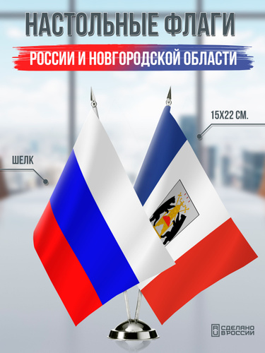 Флаг Новгородская область, 225x150 см, полиэфирный шелк