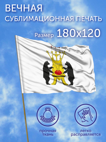 Флаг большой Герб Новгородская область, 180х120 см, Полиэфирный шелк